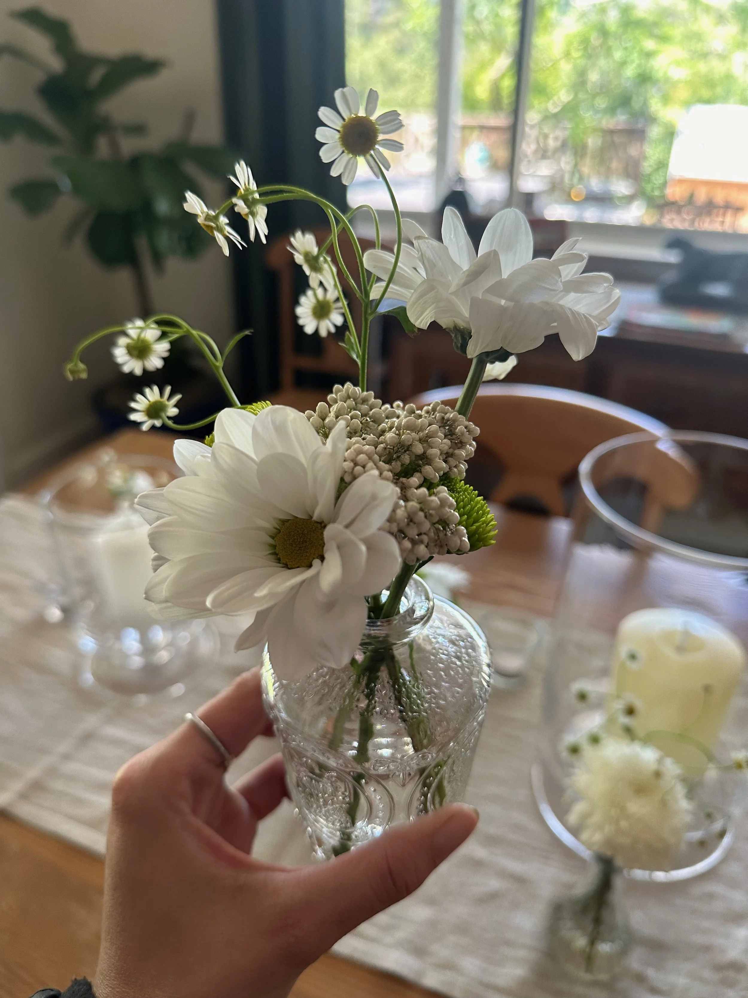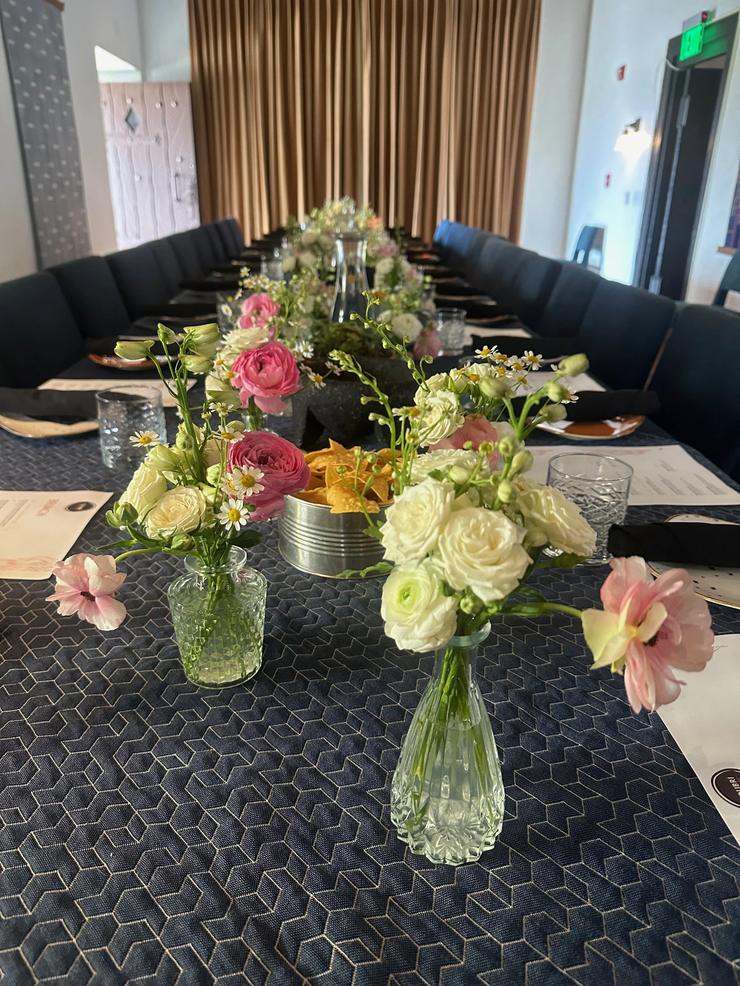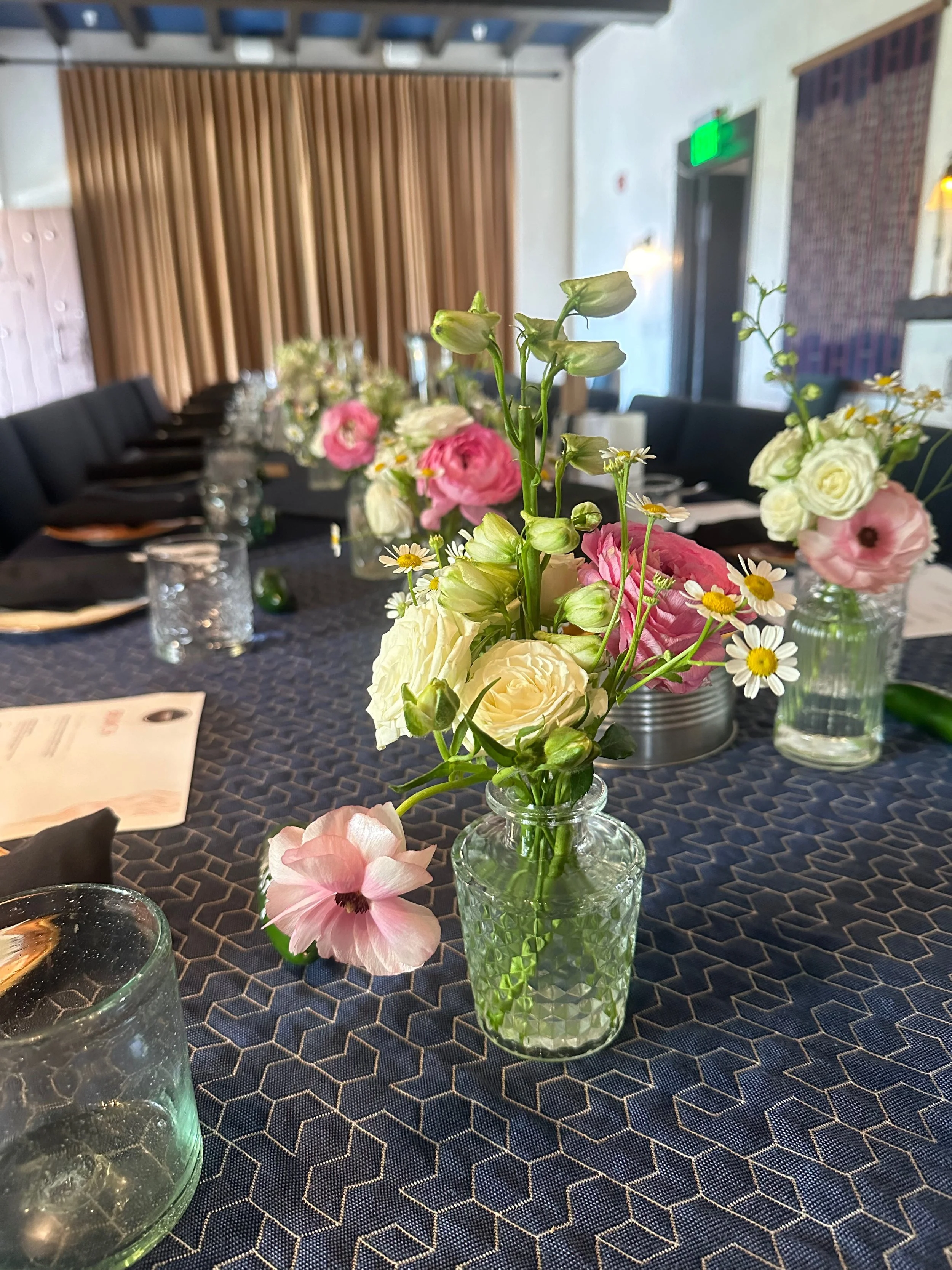 Bud vases for a casual book club party in Woodside, CA