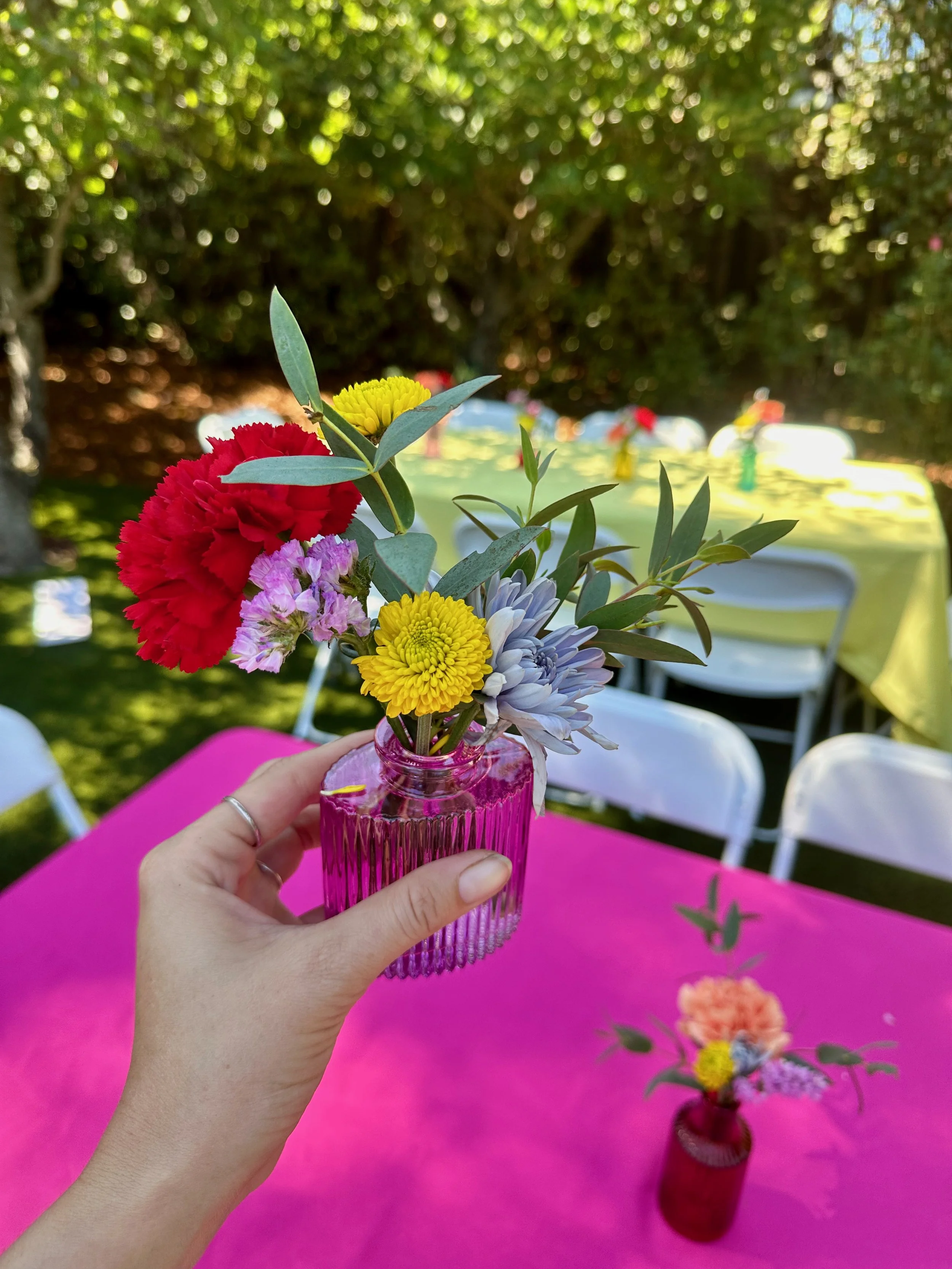 Bud vases for a birthday party in Redwood City, CA